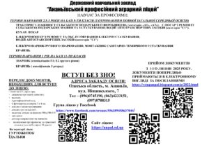 ДНЗ “АНАНЬЇВСЬКИЙ ПРОФЕСІЙНИЙ АГРАРНИЙ ЛІЦЕЙ” ЗАПРОШУЄ НА НАВЧАННЯ !